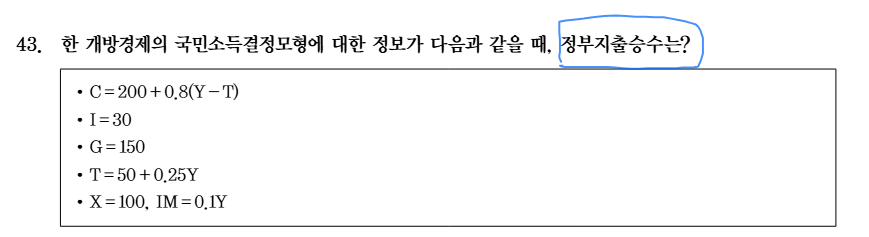 정부지출승수를 구할 때 Y 앞의 계수를 사용하는 이유