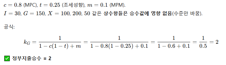 승수는 오직 **소득(Y)과 함께 움직이는 항목(c, t, m)**으로만 결정